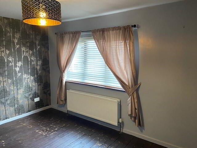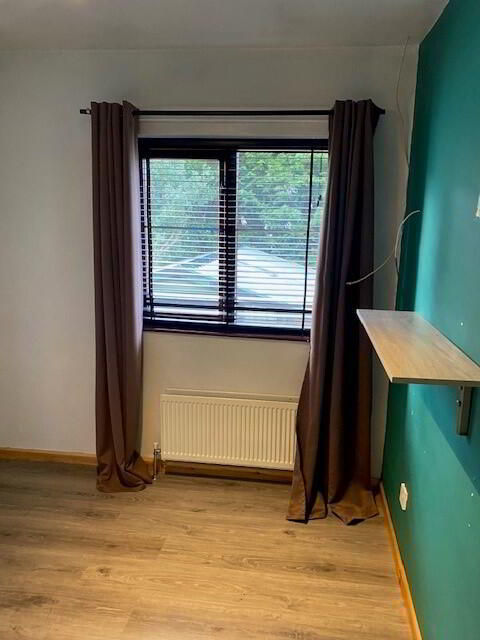 Spacious bedroom featuring wood-effect lino flooring and a double radiator.