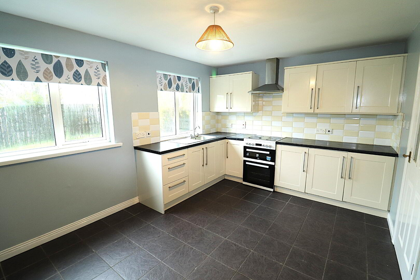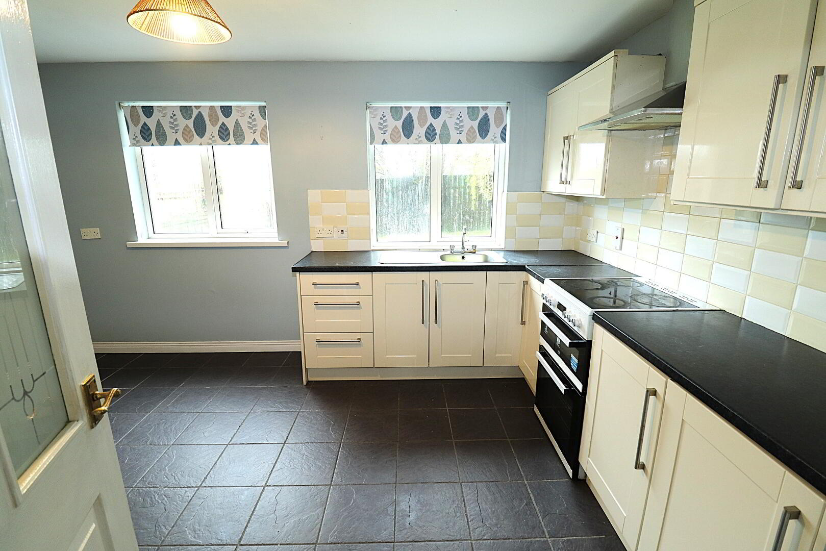 KITCHEN/DINETTE 3.20m x 4.40m Tiled floor, cream high and low level units with stainless steel sink. Space for free standing cooker and fridge freezer.